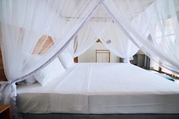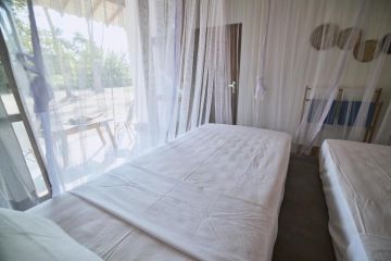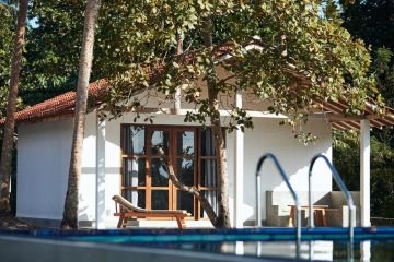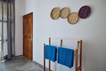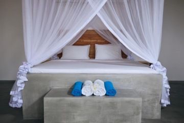 Situated in a well-maintained garden with beautiful coconut palm trees, this west-facing villa has an air-conditioned room with kingsize bed, en-suite facilities and its own private veranda overlooking the garden. Wi-Fi and private dining are available in-room or on the deck. On request, we provide up to two extra beds.